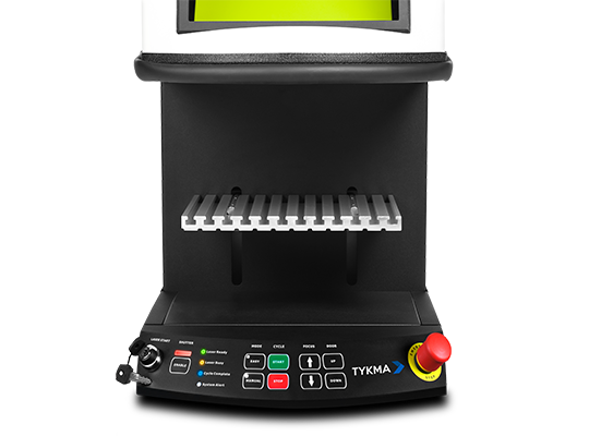 Our Easy Mode™ system provides maximum efficiency to your marking operation. Simply load the part, press start and the entire marking process is automated. A three-sided automatic vertical door provides an ergonomic method for part loading. A powered part-loading table with our focus finder system makes focal adjustment easy. Machine management is simple with the front mounted operator control panel.