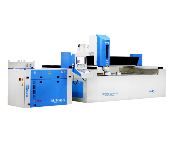 3 Axis CNC Waterjet can cut all kinds of materials existing in the nature up to 200 mm thickness with power generated by mixing pressurized water and abrasive sand. All materials cutting can be made with the same nozzle. Not only for thick but also for thin materials, it can realize 90 degrees corner, narrow angular and small radius precise cuttings.
