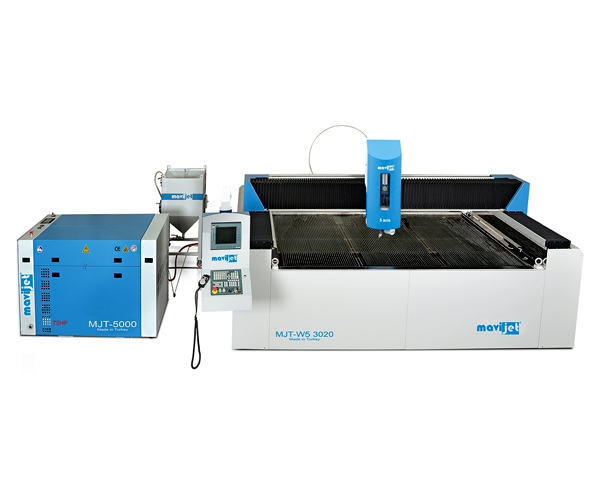 3 Axis CNC Waterjet can cut all kinds of materials existing in the nature up to 200 mm thickness with power generated by mixing pressurized water and abrasive sand. All materials cutting can be made with the same nozzle. Not only for thick but also for thin materials, it can realize 90 degrees corner, narrow angular and small radius precise cuttings.