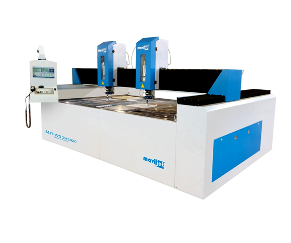 This very special waterjet machine is donated with simultaneously working double heads and drilling system for cutting multi type materials as well as drilling holes.